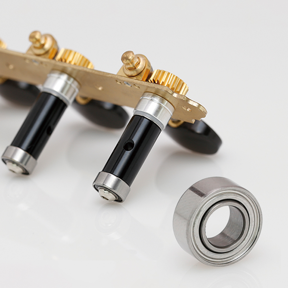 従来のギターマシンヘッドの構造を根本から見直し、新構造の軸受を採用する事で同軸性、耐久性の向上を図りました。カーボン独特の素材模様を生かしたネオクラシカルKG-01に続き、トラディショナルな外観でストリングスペーシングに囚われないシングルボディのKG-02シリーズも登場。